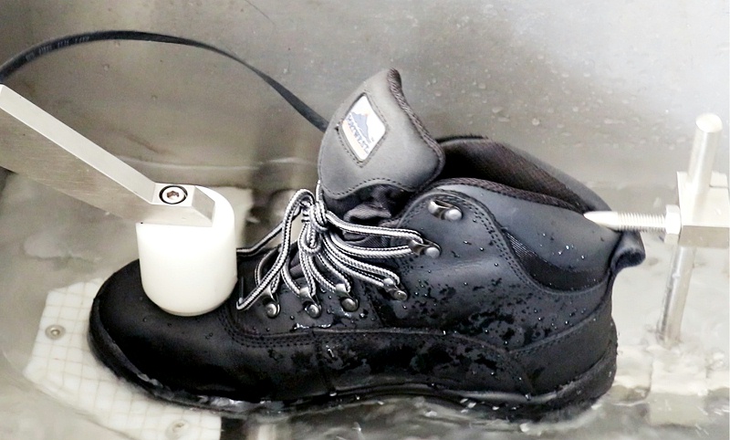 通過前面對防水勞保鞋的簡單介紹我們知道防水性能可通過兩種方法實現,一是防潑水,二是內襯實現防水性能。因此我們有成品鞋防水測試和防水襪套測試,兩種不同方式檢驗防水測試。